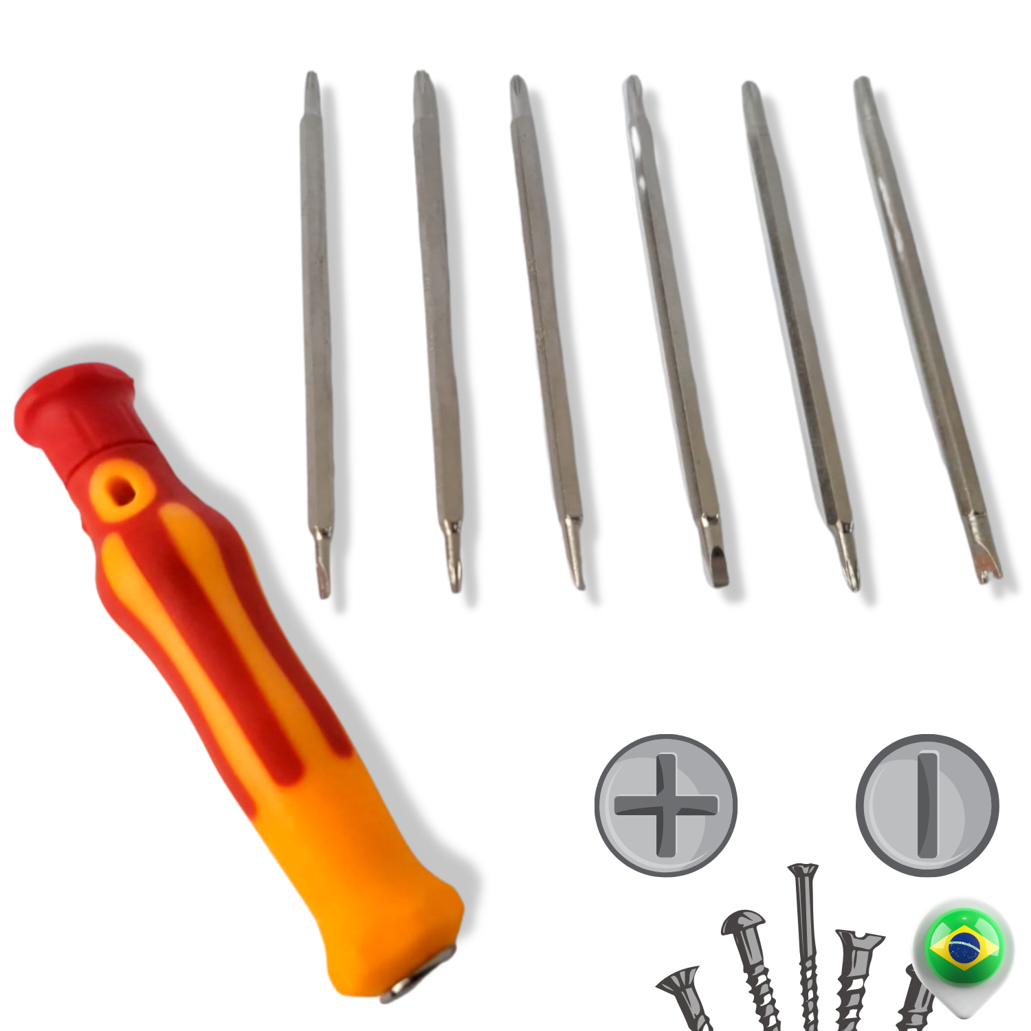 06 Chaves de Fenda Imantadas 2 LADOS (12 Encaixes)