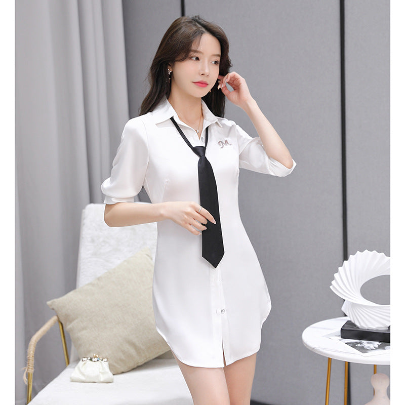 Cor: Camisa branca + gravata de zíper, camisa branca simples