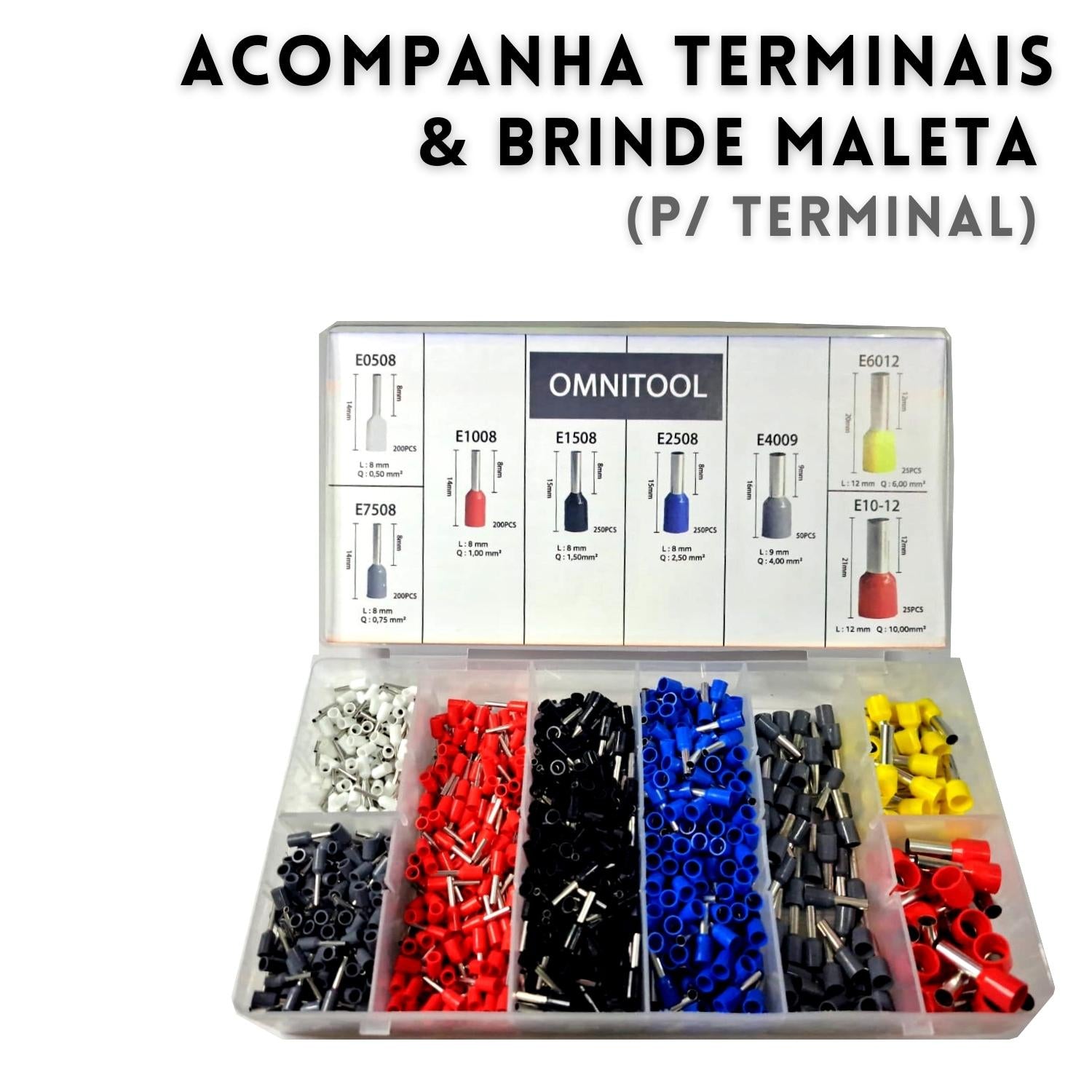 Mas isso não é tudo! Para tornar a sua vida ainda mais fácil, este Crimpador vem equipado com uma variedade de terminais - 1200pcs - e uma caixa de armazenamento para que você possa transportá-lo para onde precisar.