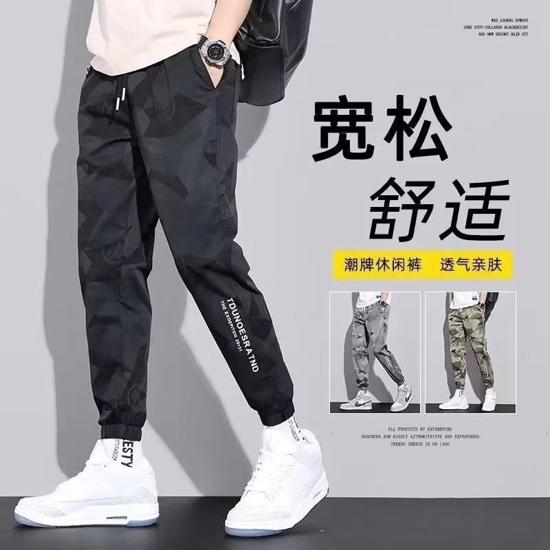 Calças casuais masculinas primavera e outono nova juventude folgada ferramentas esportivas camuflagem longa