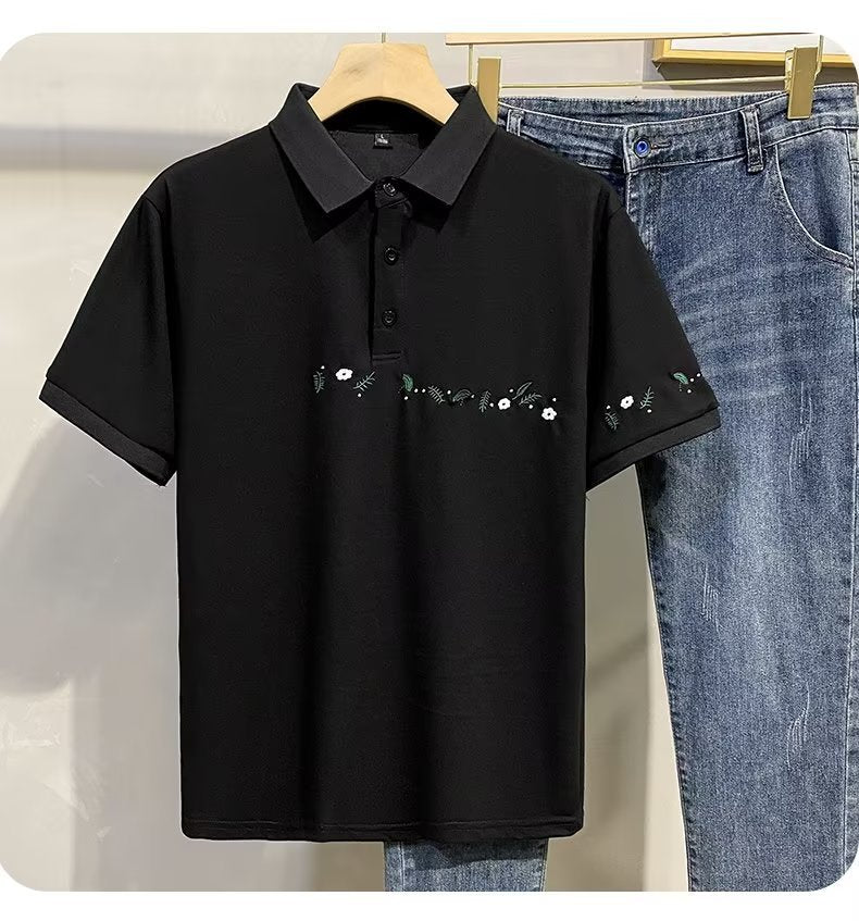 Camiseta masculina de manga curta casual de verão com lapela bordada camisa POLO ins tendência para todos os jogos blusa bordada juvenil