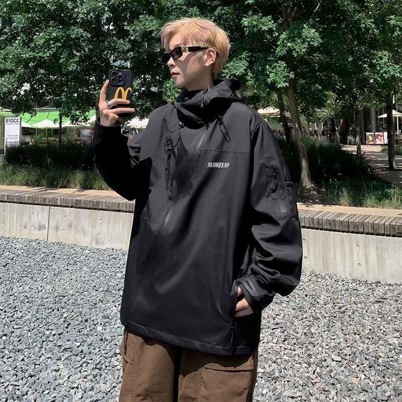 淘货类别: 青春流行(18-24岁)领型: 立领版型: 宽松型门襟: 拉链是否连帽: 连帽厚薄: 普通是否库存: 否适合人群: 青年上市年份/季节: 2023年秋季面料名称: 化纤类混纺适用场景: 休闲款式细节: 拉链装饰服装下摆设计: 直下摆工艺: 免烫处理穿搭方式: 外穿袖长: 长袖颜色:...