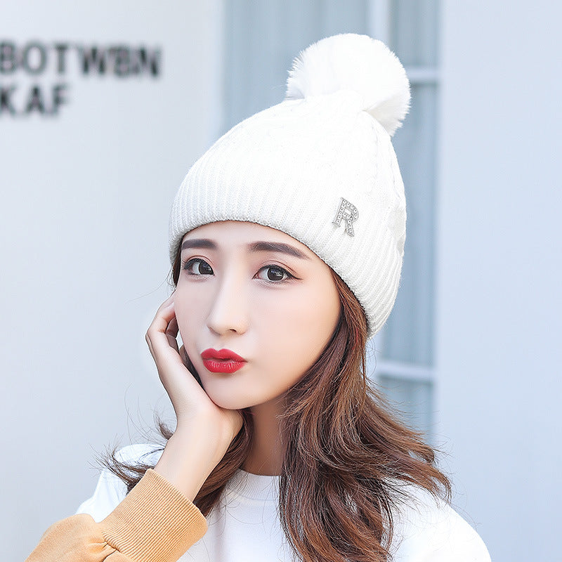 Uma touca feminina com topo em formato de pompom e letra ''R'' bordada na frente. Estiloso e moderno, é o acessório ideal para looks elegantes e despojados.