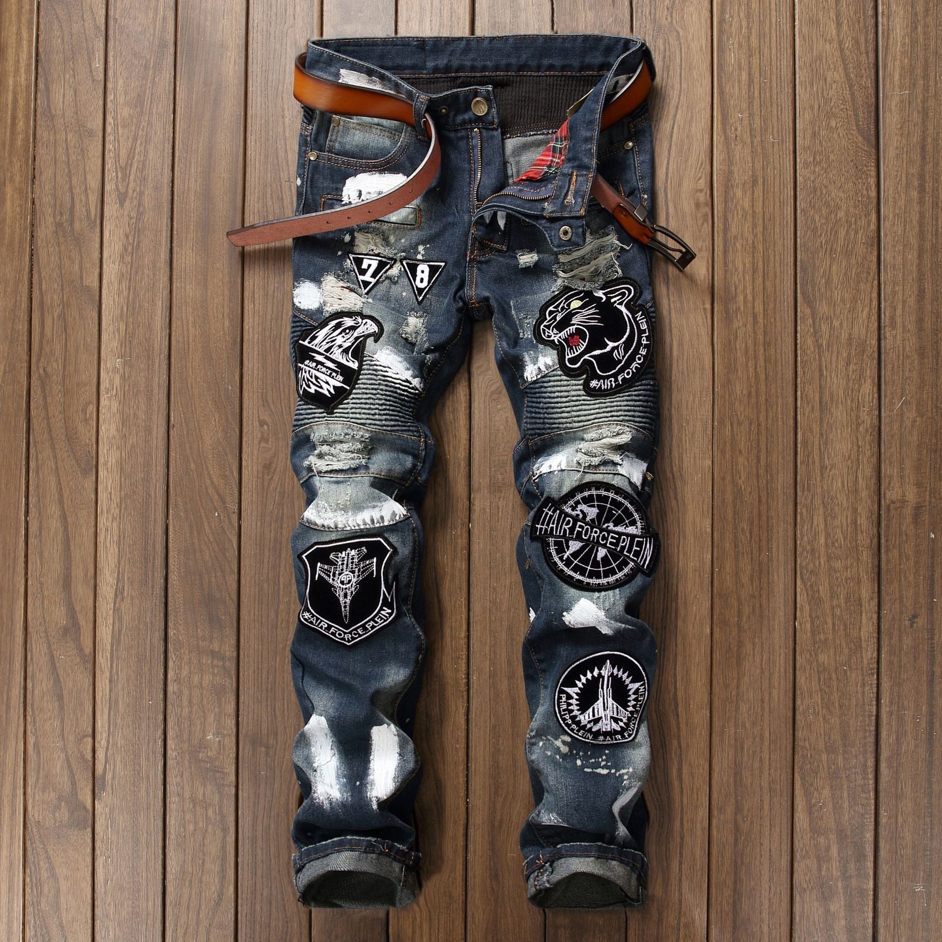 Esta calça jeans estilo punk tem remendas, desenhos e rasgos para dar um toque moderno ao seu estilo. É versátil e versátil para usar em shows e passeios - perfeita para ousar e ousar. A escolha ideal para quem quer um look original e único.