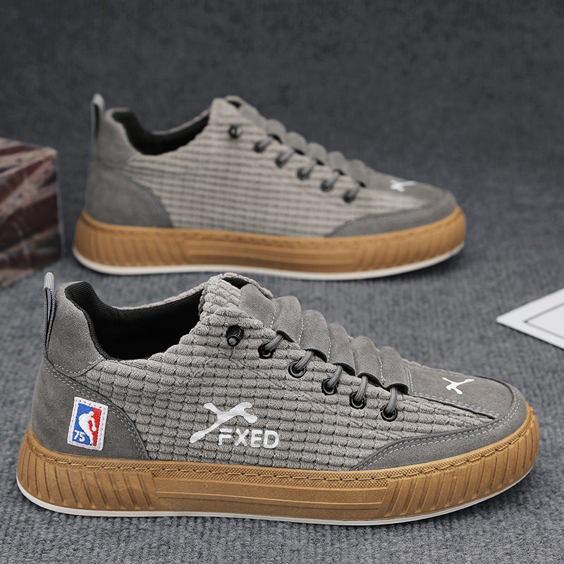 Os sapatos de pano esportivo masculino com estilo high street da marca são a escolha ideal para dar um toque de estilo às suas roupas. Seu design moderno e discreto é perfeito para ocasiões casuais e elegantes.