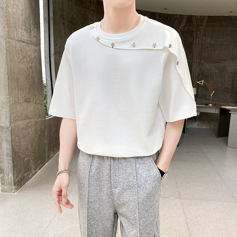 Mantenha-se atualizado estilisticamente com essa T-shirt de manga curta com ombreira de sensação de verão. Faz parte do seu guarda-roupa contemporâneo com sua aparência estilosa.