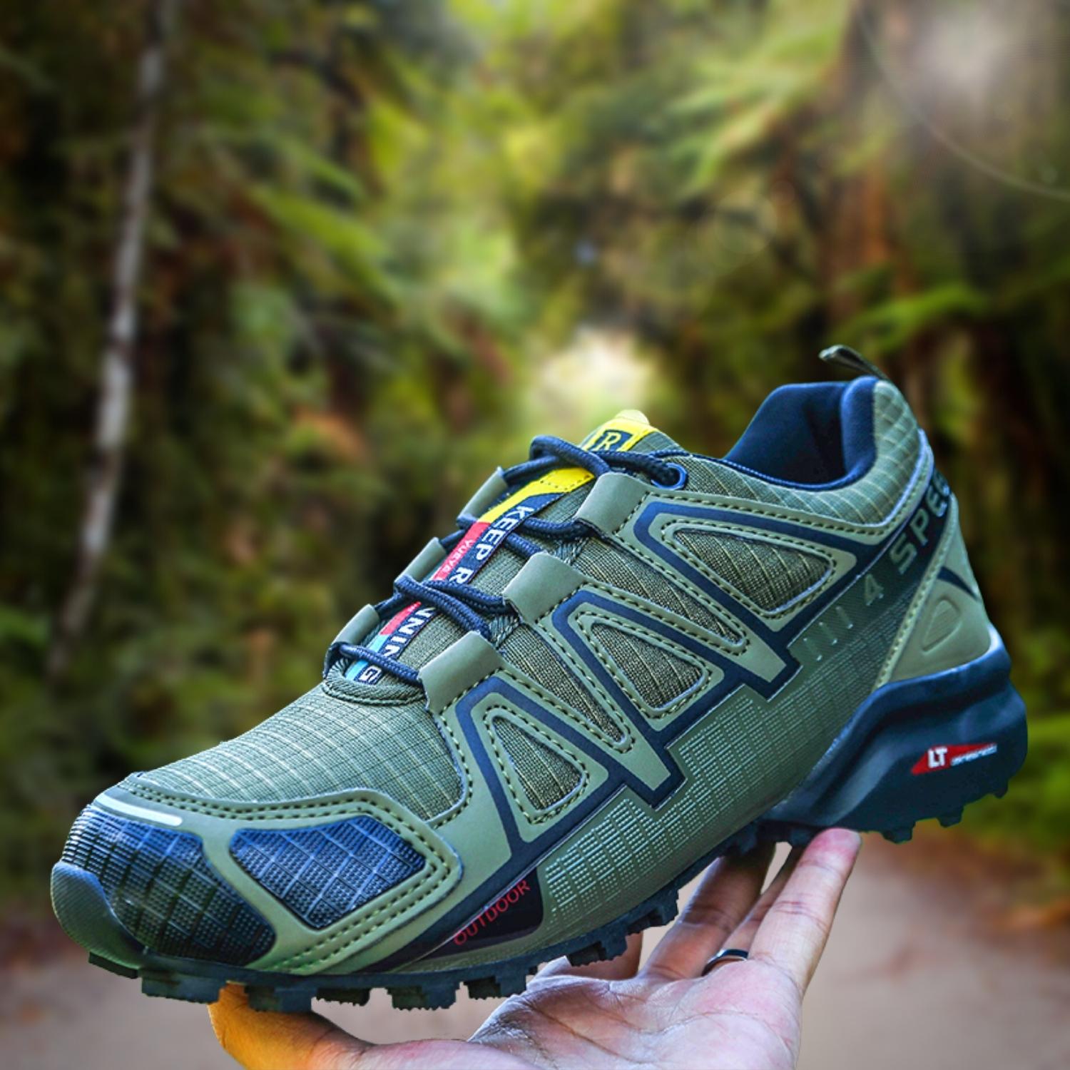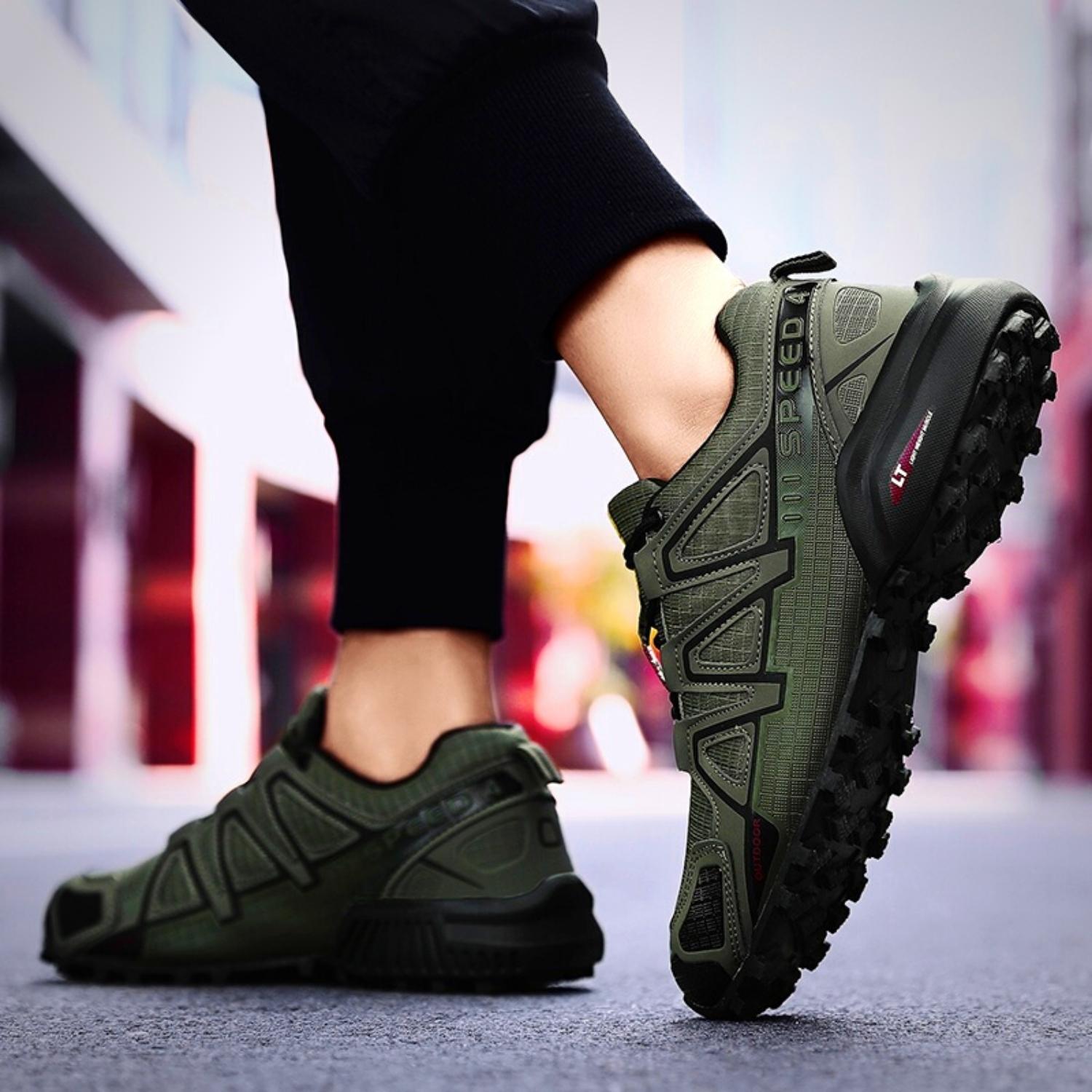 Este tênis masculino para trilha é o calçado esportivo perfeito para caminhadas e corrida. Ele é respirável, garantindo que seus pés permaneçam frescos e secos, mesmo em condições úmidas ou quentes. Oferece conforto e suporte excepcionais para aqueles que precisam de um calçado leve, porém resistente. Com sua sola antiderrapante, este tênis garante uma aderência confiável em terrenos difíceis, tornando-se a escolha ideal para qualquer pessoa que procura um calçado durável e confiável para suas performaces.