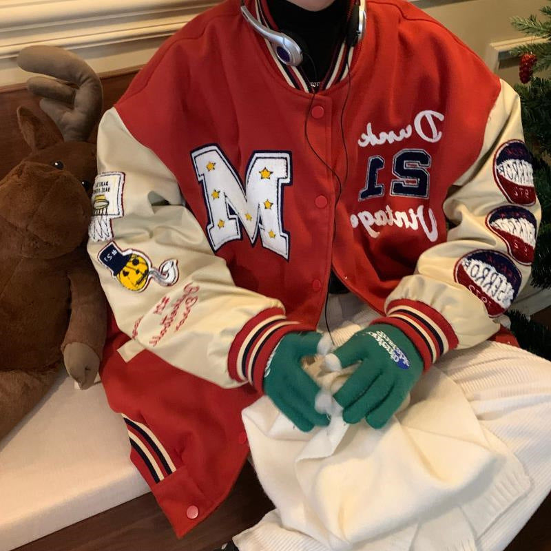 Esta jaqueta estilo de baseball apresenta letras bordadas e fechamento de botão retro que oferecem um estilo único e moderno. Ideal para ocasiões casuais, é estilosa, descolada e ideal para todos os momentos.