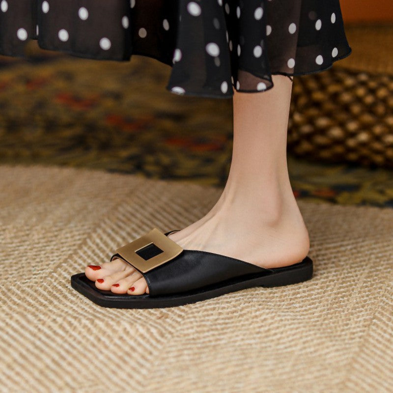 A sandália plana feminina com frente aberta é perfeita para qualquer ocasião. Este modelo estiloso oferece uma confortável sensação de uso durante todo o dia. Ideal para combinar com outfits casuais e formais.