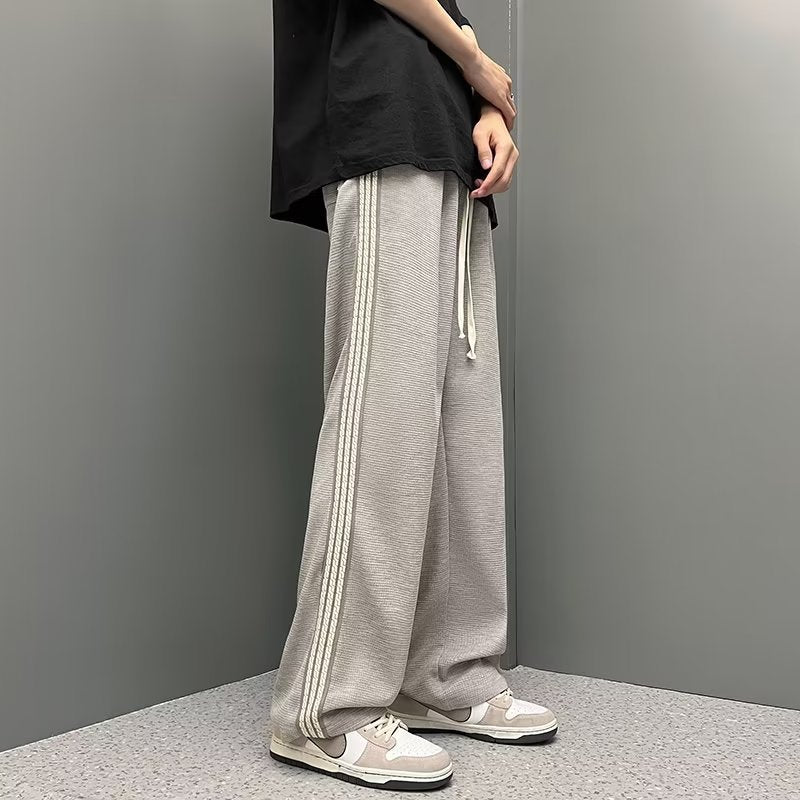 Apresentando uma sofisticada estampa de waffle, as Calças oversize listradas masculinas são o look perfeito para as tendências modernas. O design estiloso vai encantar os homens modernos e sempre na moda.