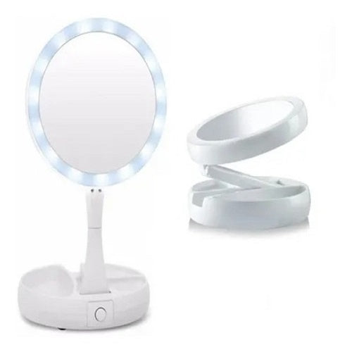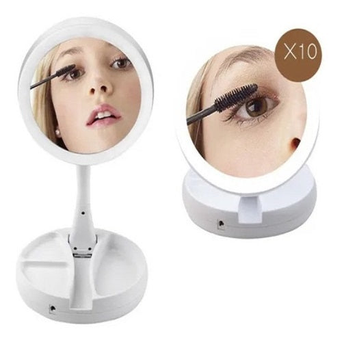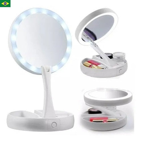 Espelho De Luz Led Dobravel Aumenta 10x Maquiagem Portáti