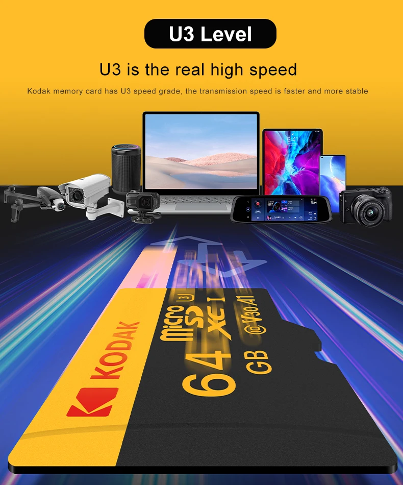 • Alta velocidade desempenho:Com sua classificação U3 4K, este cartão de memória garante desempenho de alta velocidade, proporcionando rápida transferência e acesso a dados.