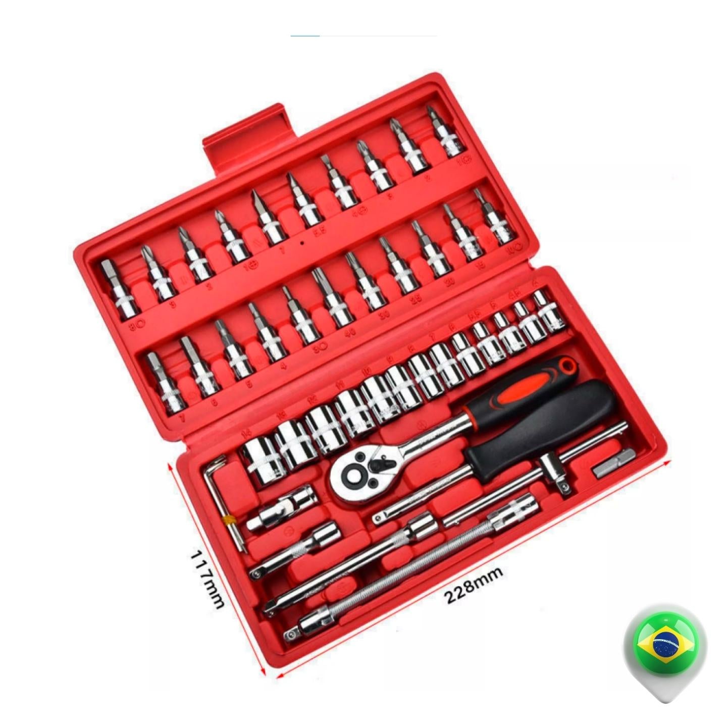 Ferramenta 46 Unidades Catraca Soquetes com Maleta